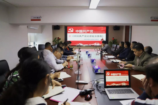 會上,公司黨委書記肖仲華傳達了集團公司《關于進一步加強成員單位領導班子思想政治建設的實施方案》文件精神,帶領大家學習新《中國共產黨紀律處分條例》,并觀看《帶你了解監察法》視頻。
