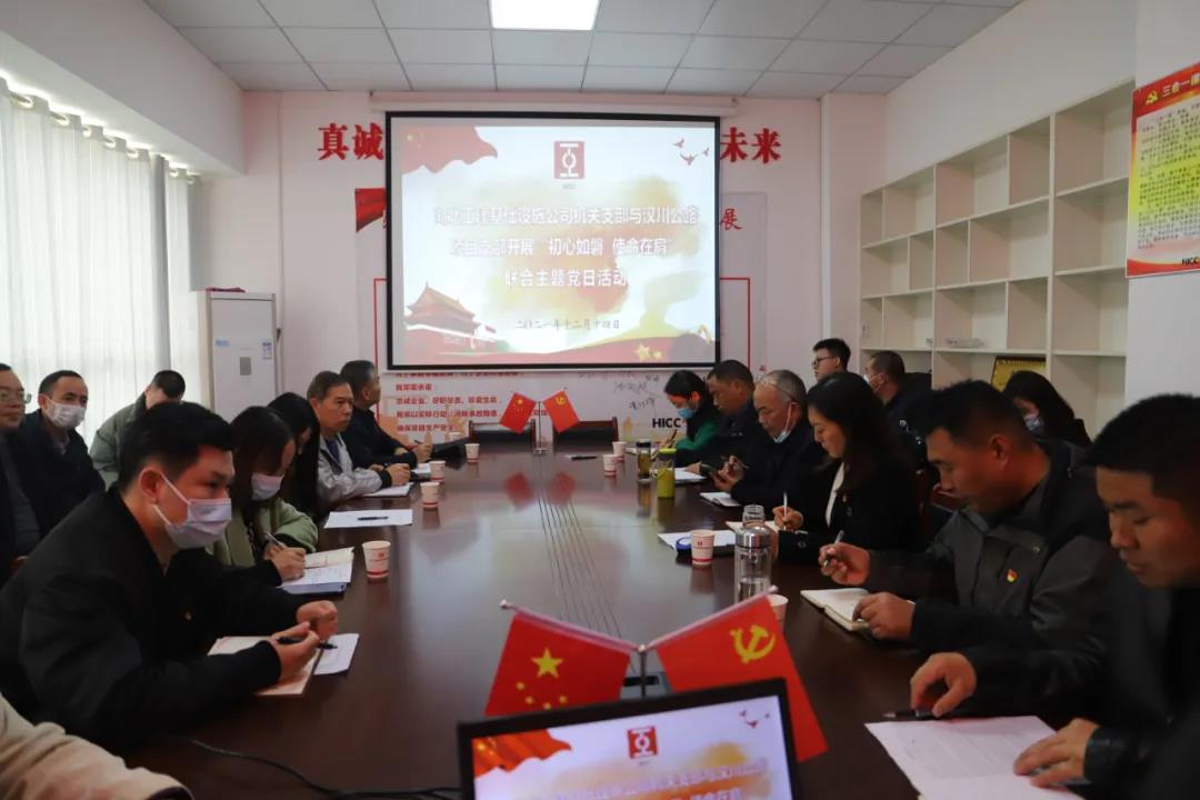12月14日,公司機(jī)關(guān)黨支部與漢川項(xiàng)目黨支部聯(lián)合開展“初心如磐 使命在肩”主題黨日活動(dòng)。活動(dòng)由機(jī)關(guān)黨支部書記余錦風(fēng)主持,公司黨委委員、紀(jì)委書記馮文漫出席并講話。