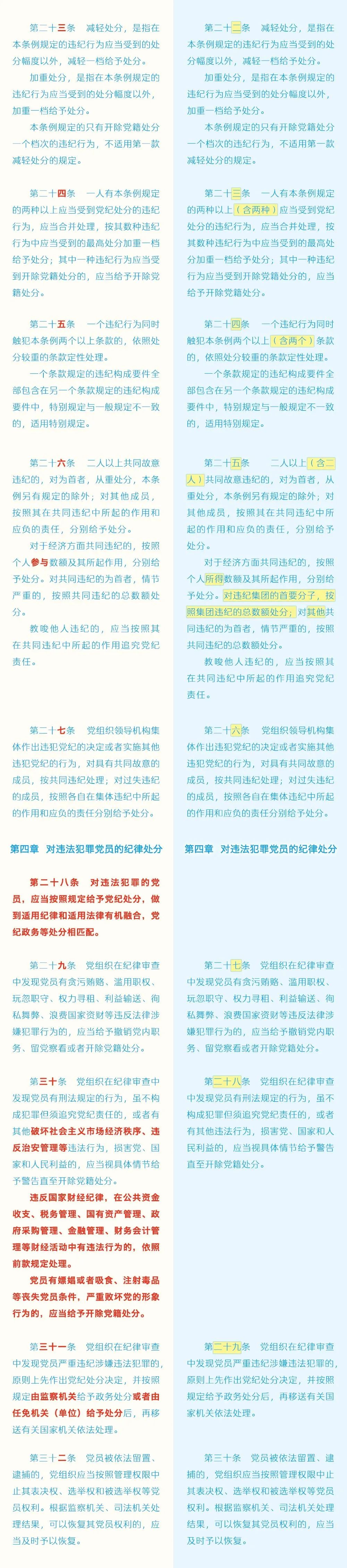 近日,中共中央印發了修訂后的《中國共產黨紀律處分條例》(以下簡稱《條例》),并發出通知,要求各地區各部門認真遵照執行。為幫助大家更好學習理解,本文對《條例》已修訂內容與原內容進行對照解讀。